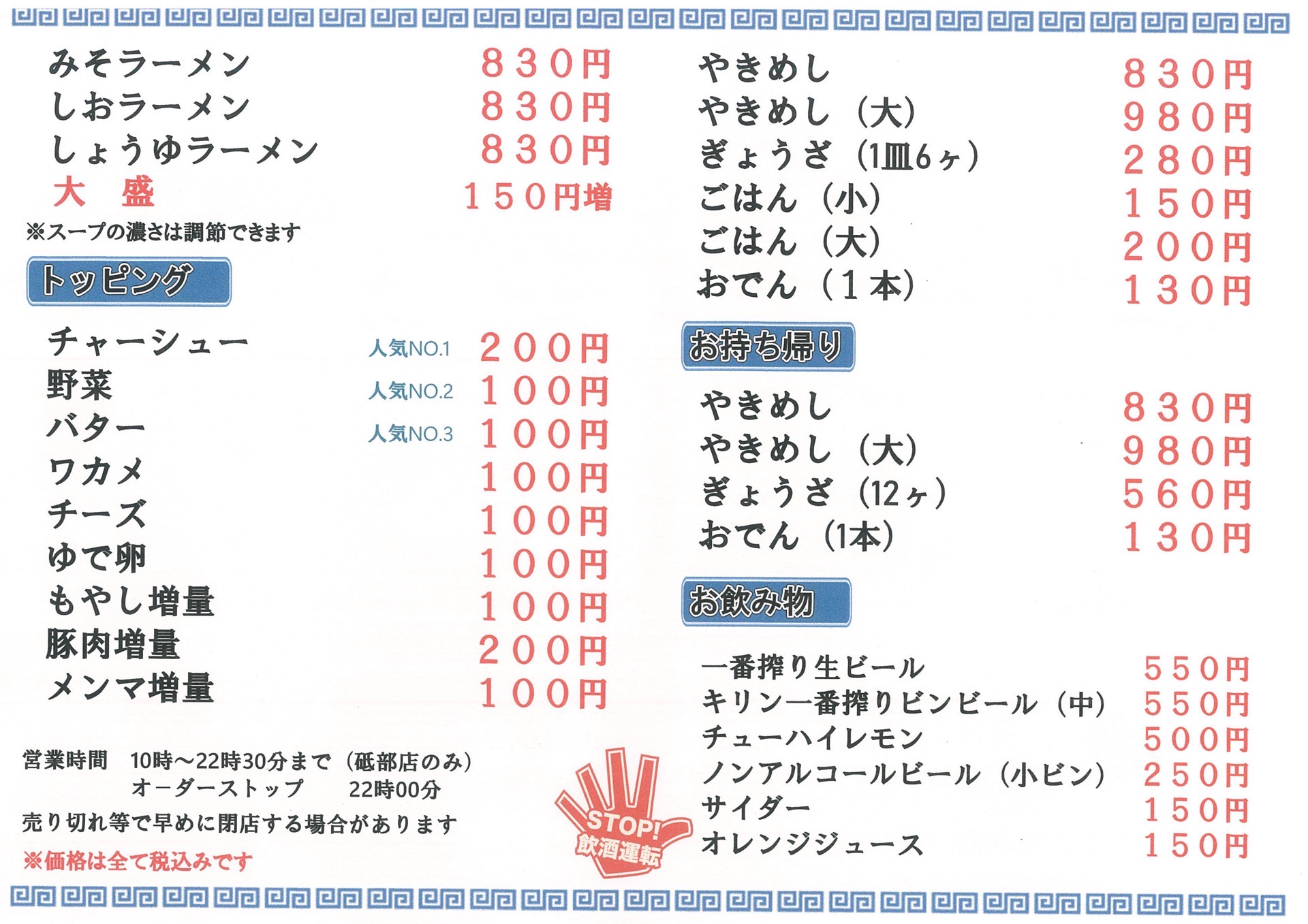 ※人手不足・品不足の時に急遽営業時間を短縮変更する場合がございますのでご了承ください。